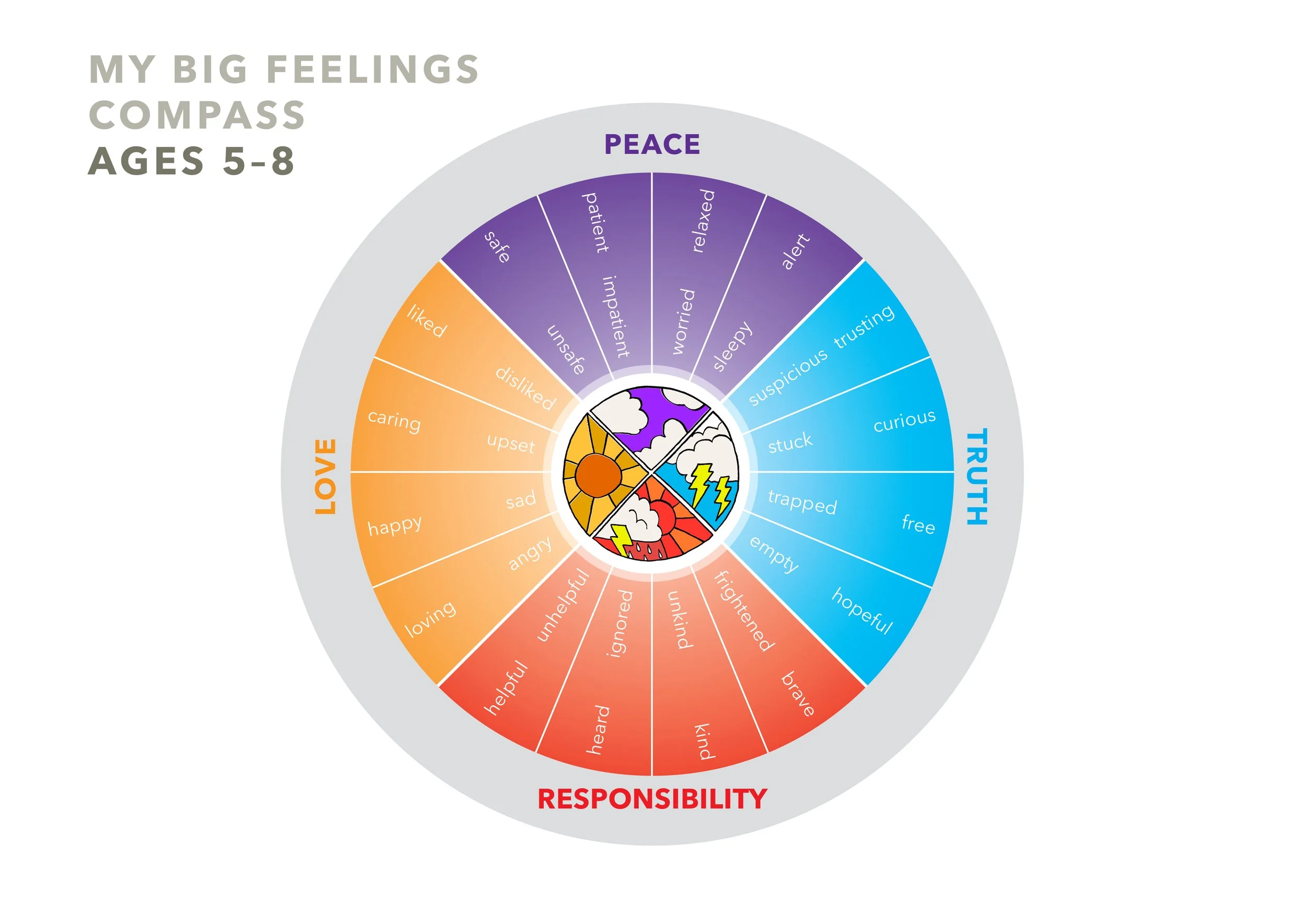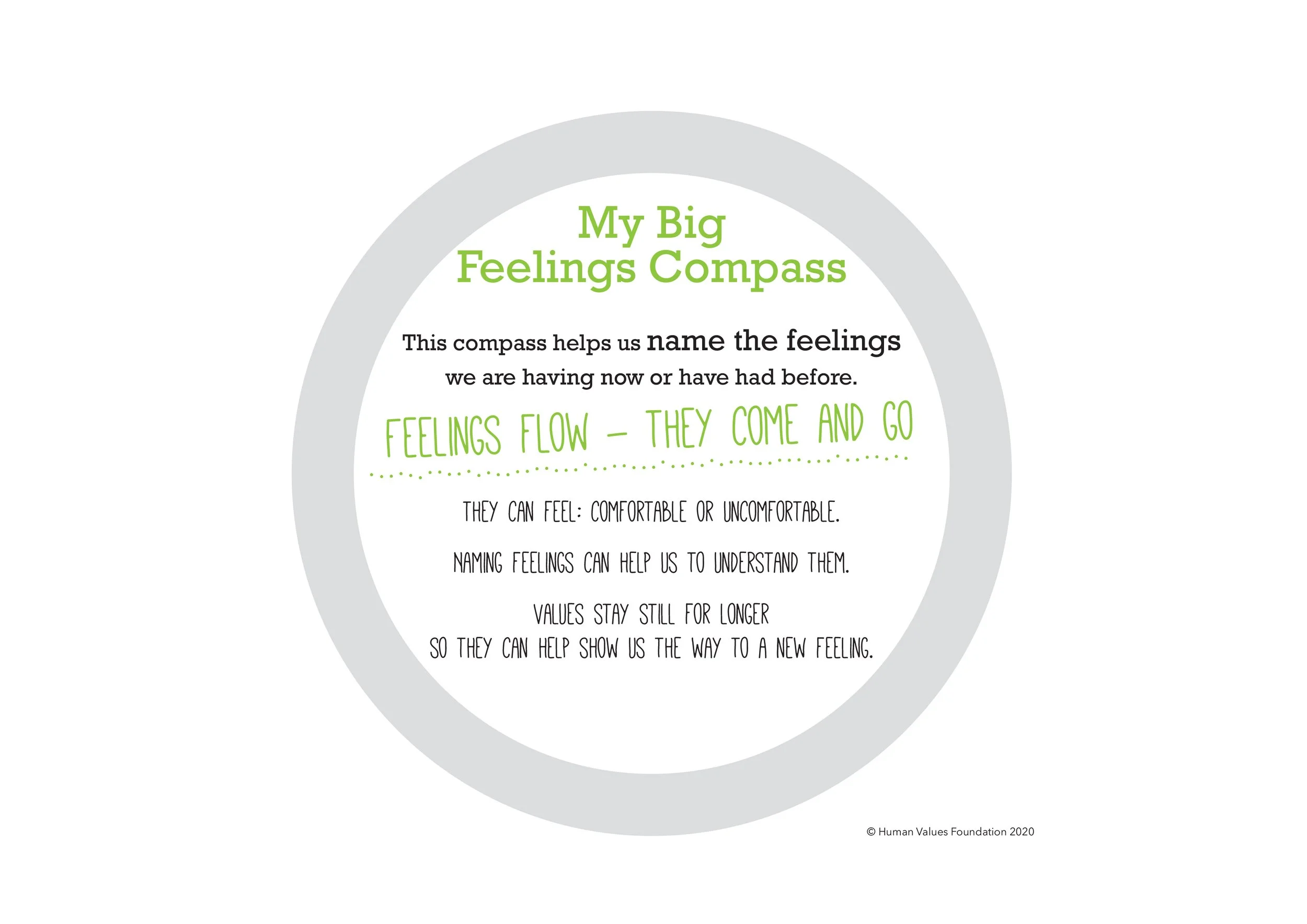 Each pair of children should have a BIG Feelings Compass to refer to in each lesson. Cut out the front and back and stick them together. There is one compass for ages 5 to 8 and one for ages 8 to 11.